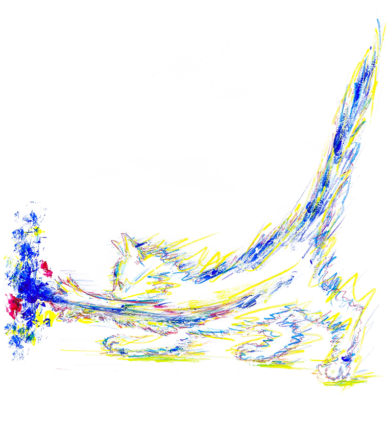 画材:紙、アクリル水彩、ボールペン、色鉛筆