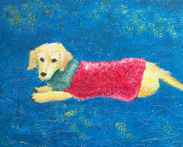 何を見ているの / What are you looking at? 2023 4/24 画材:キャンバス、ジェッソ、アクリル水彩、クレヨン制作年:2023年出展:Creatures2023展 @GALLERY AND LINKS 81, Tokyo AllPAINTING
