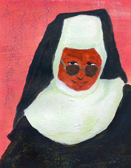 Oh Maria 2023 12/05 画材:紙、アクリル水彩、クレヨンサイズ:A4制作年:2023年 ※MJイラストレーションズ課題「好きな映画」にて、「天使にラブソングを / Sister Act」をテーマに作成 AllPAINTING